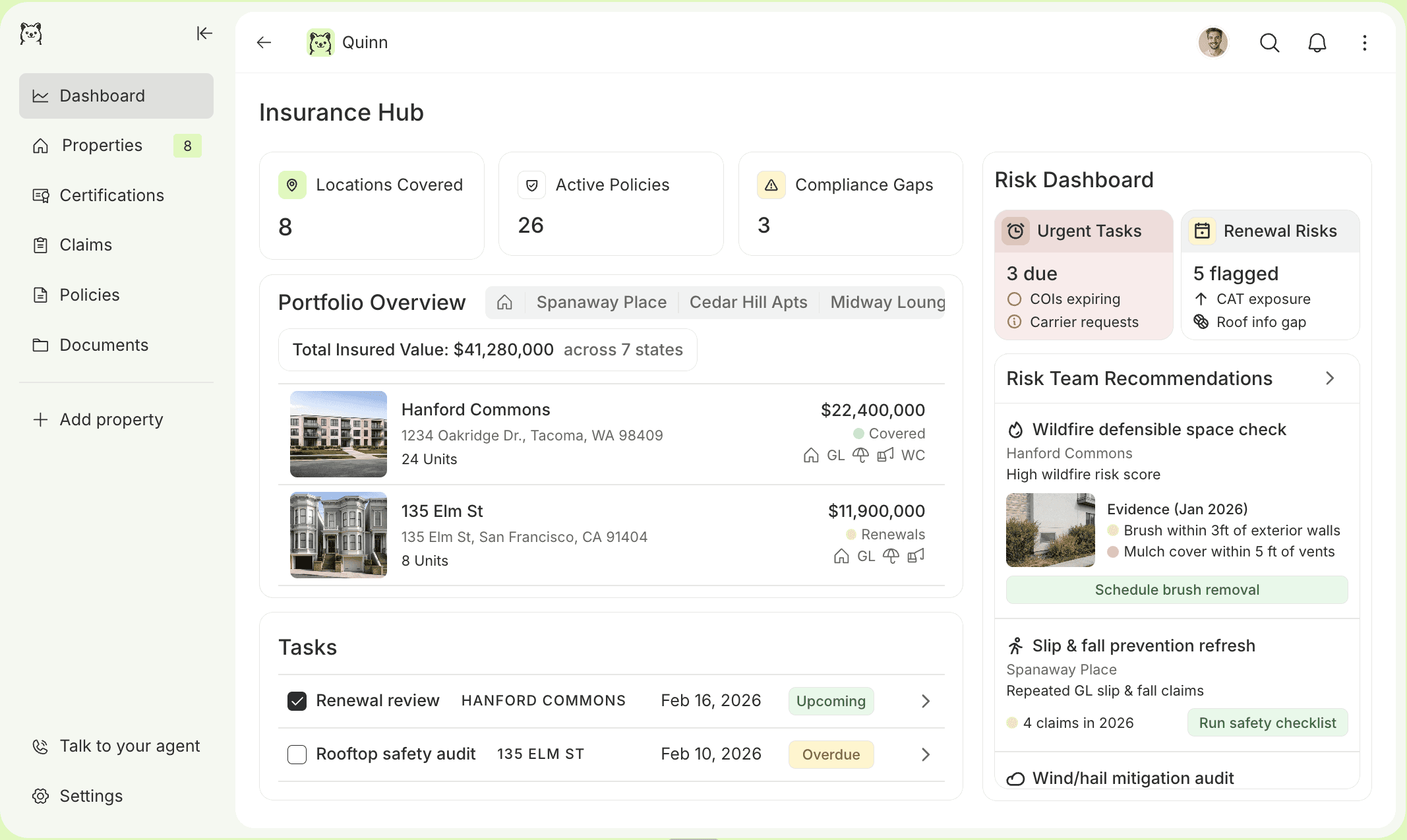 "Quinn helped us clean up coverage we were overpaying for and made sure the gaps were filled. We’re spending less now and have more confidence in what’s actually covered."